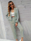 Out-Shine | Crop Blue Jacket & Tapered Pants Outfit Set for Women