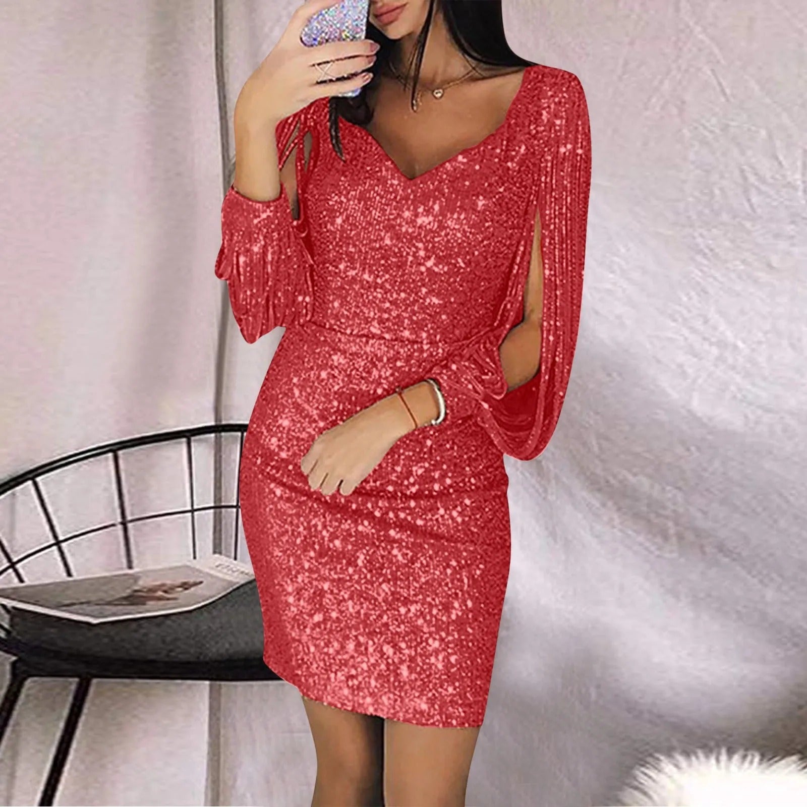 Out-Shine | Stylish Tassel Sequin Glitter Dress For Women