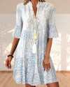 Out-Shine | Women's Elegant Print Mid Dress Blue