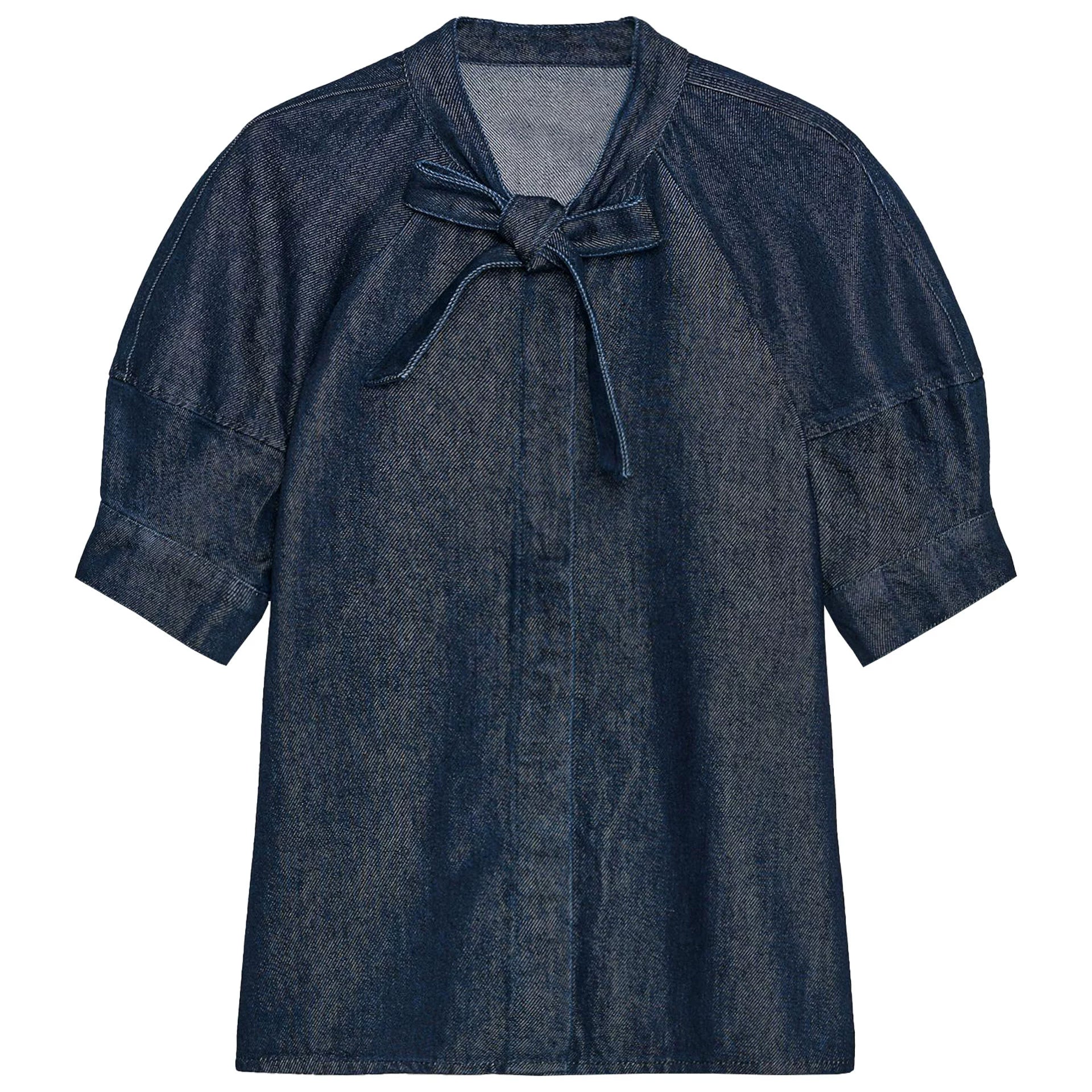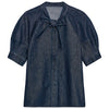 View compareOut-Shine | Bow-Detailed Puff Short Sleeve Round Neck Denim Shirt