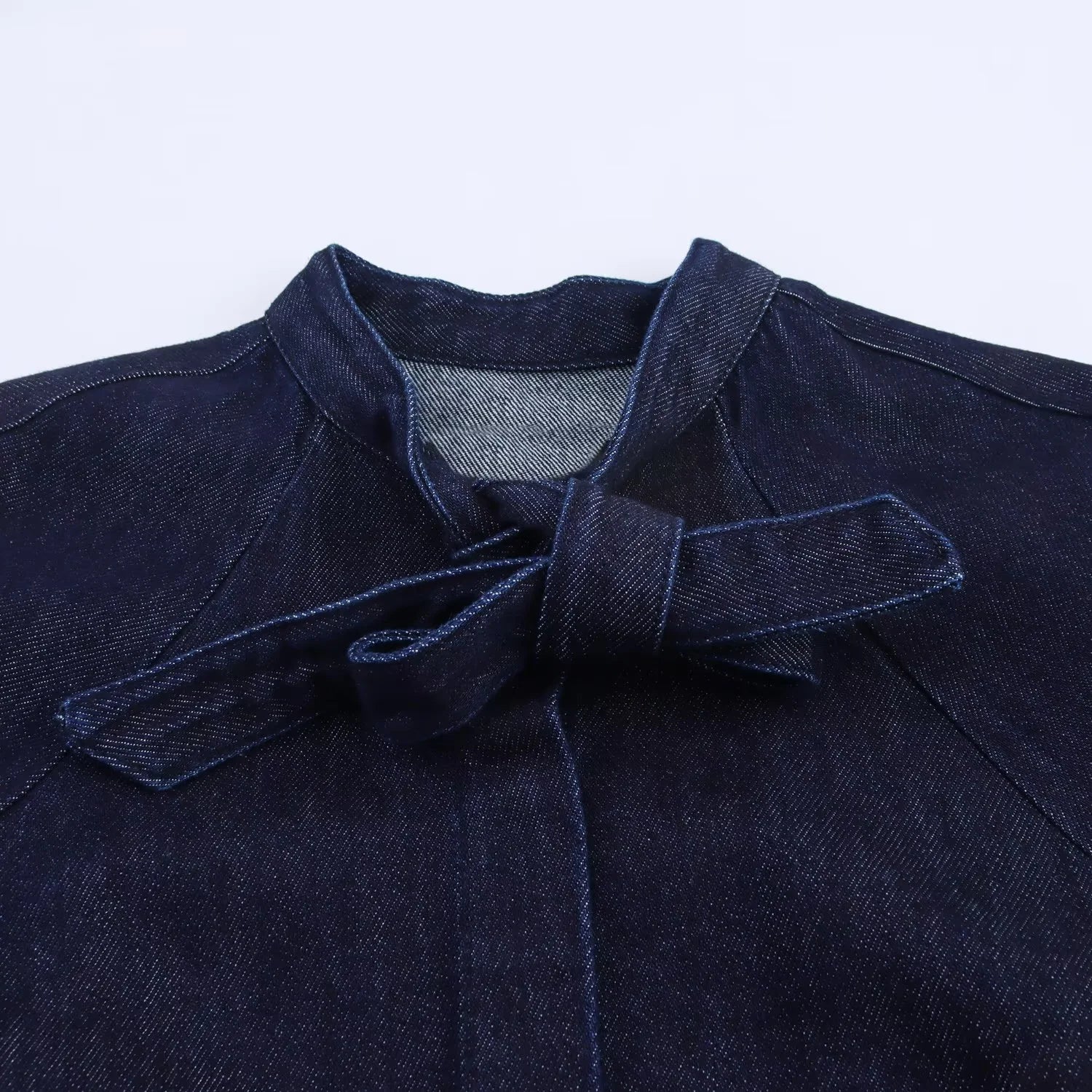 Out-Shine | Bow-Detailed Puff Short Sleeve Round Neck Denim Shirt