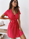 Out-Shine | Short sleeve V-neck rubber band binding dress