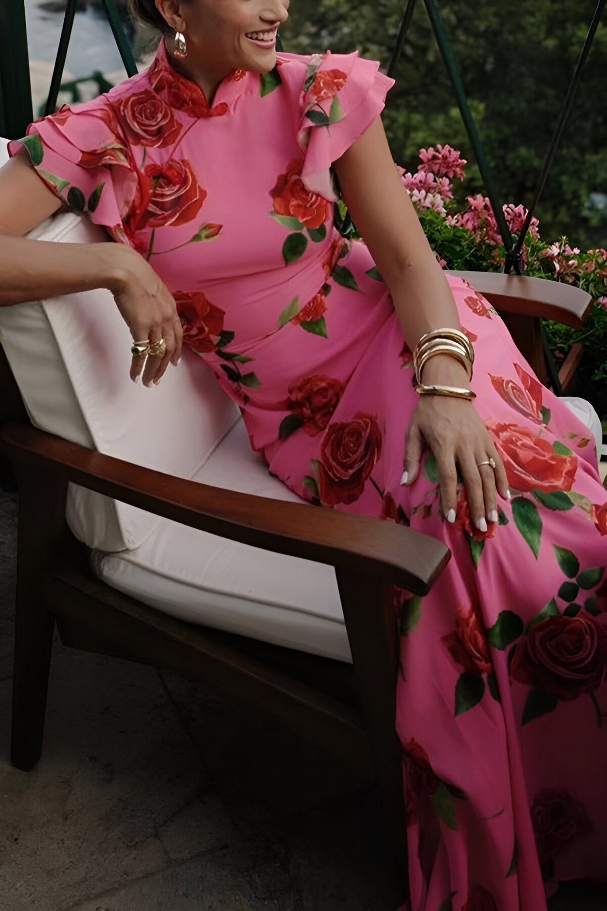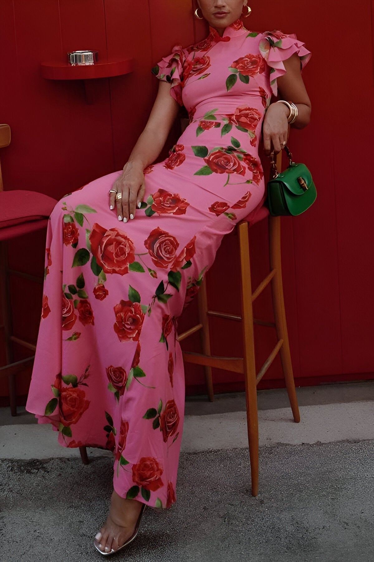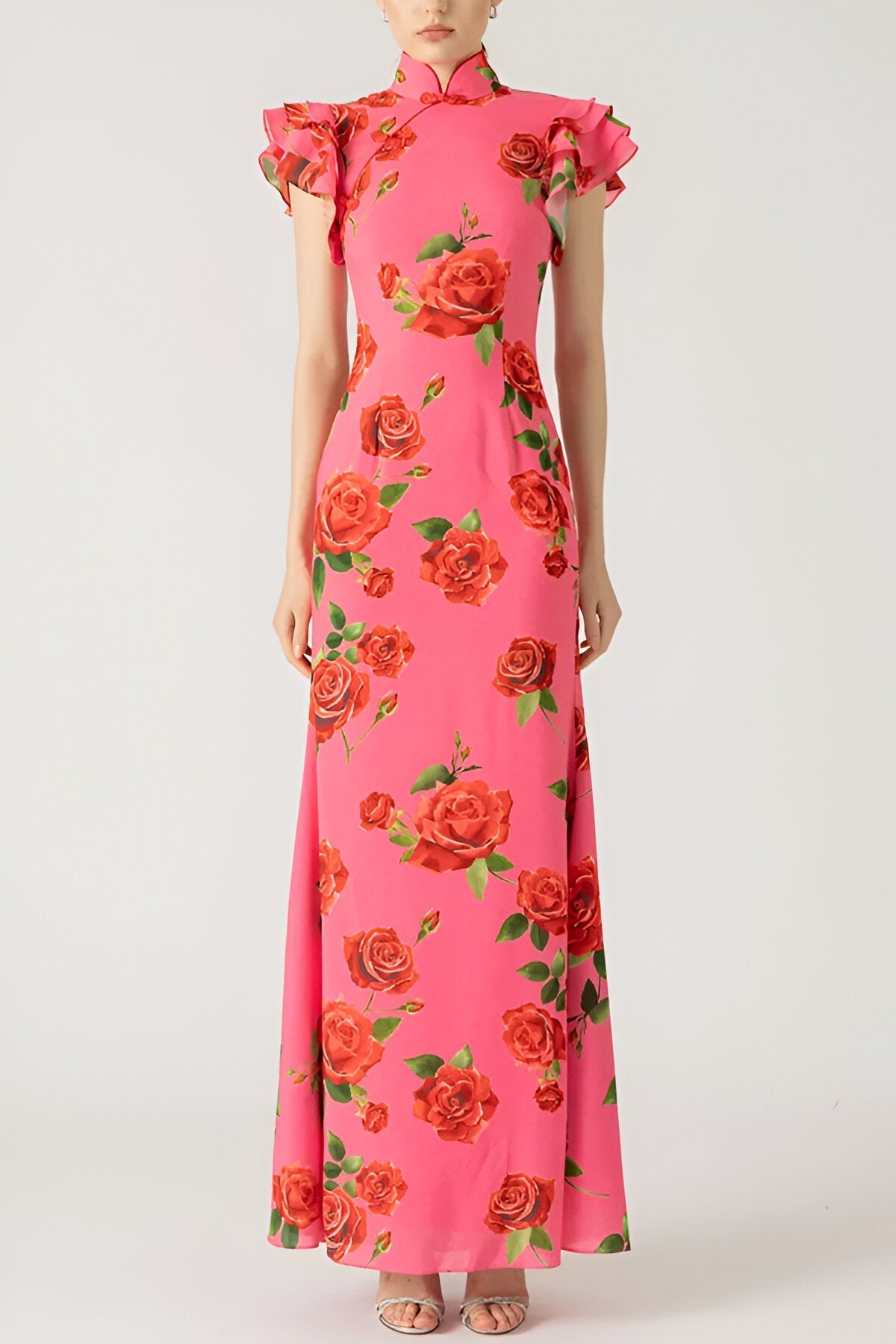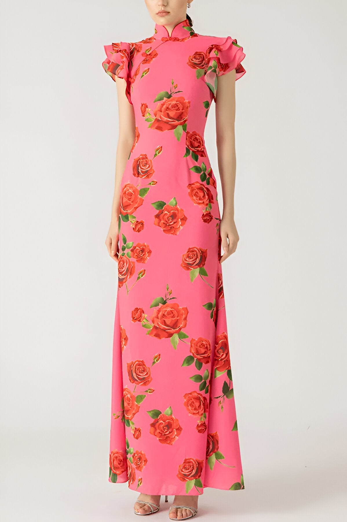 Embrace effortless style with the LUZ™ Dress, showcasing a striking floral design that captivates the eye. The elegant high neckline and tiered bell sleeves contribute to its sophistication, while the full-length shape offers a sleek and graceful profile.