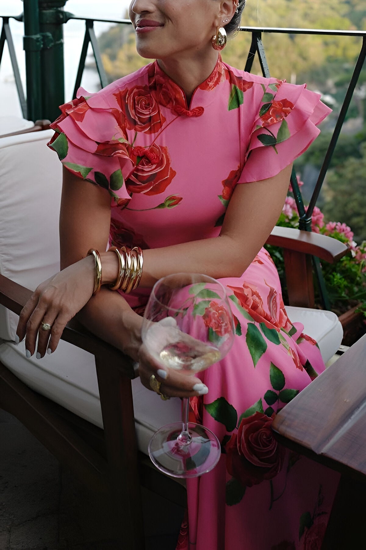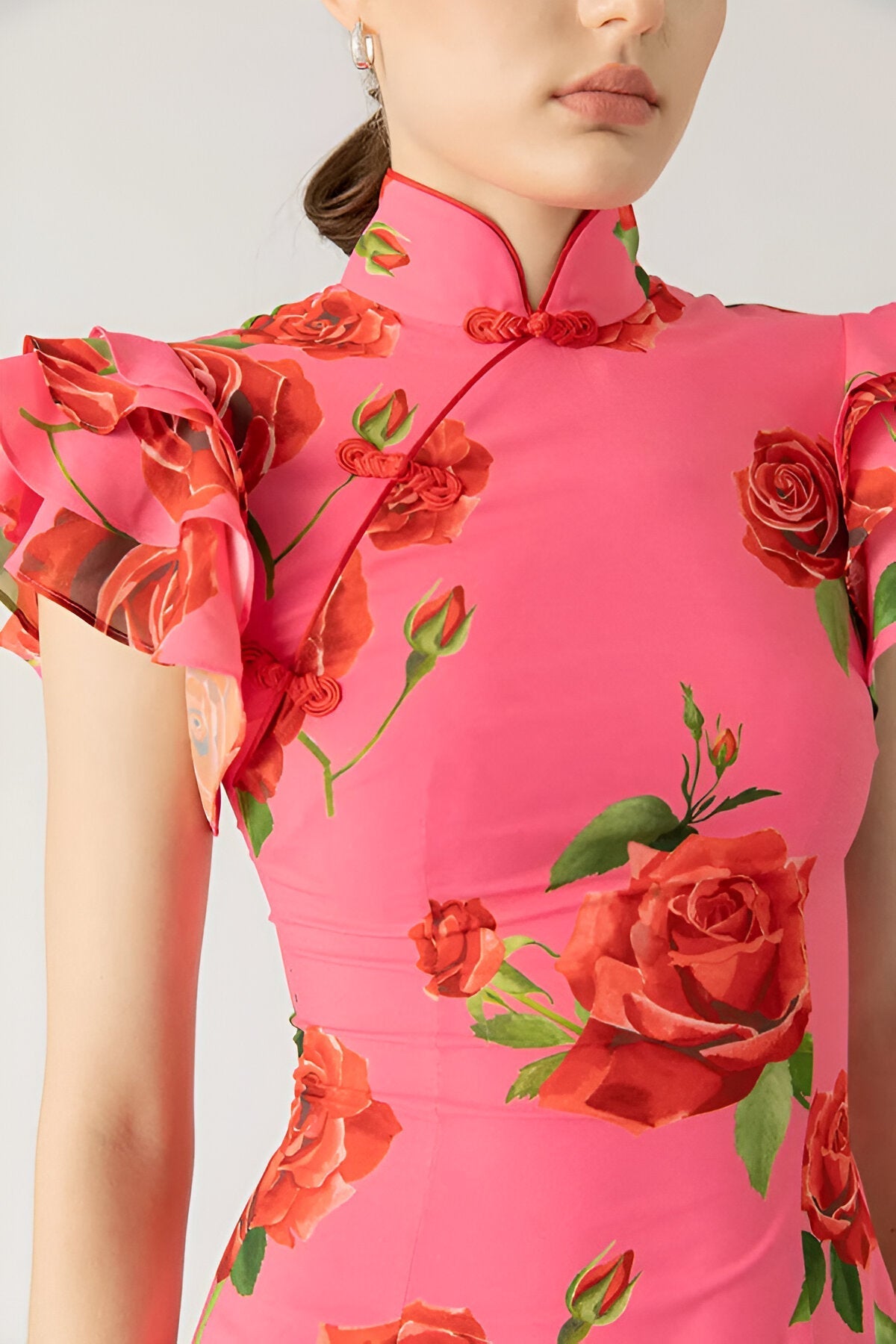 - Tiered bell sleeves enhance contemporary flair.